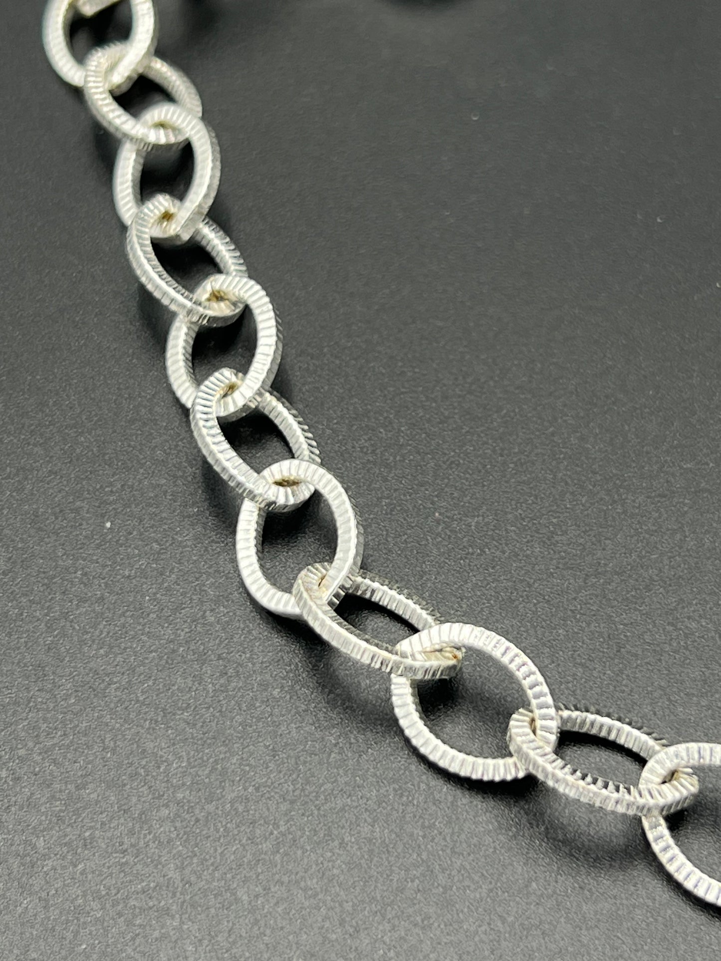 This 15x11mm Silver Plated Grooved Oval Thick Chain offers a stylish and durable option for jewelry making. The grooved oval shape adds texture and visual interest, while the silver plating lends a sleek and polished look. Perfect for creating statement pieces at an affordable price of $2.40 per foot.